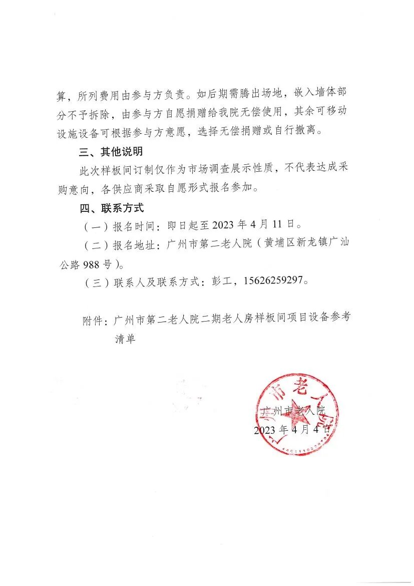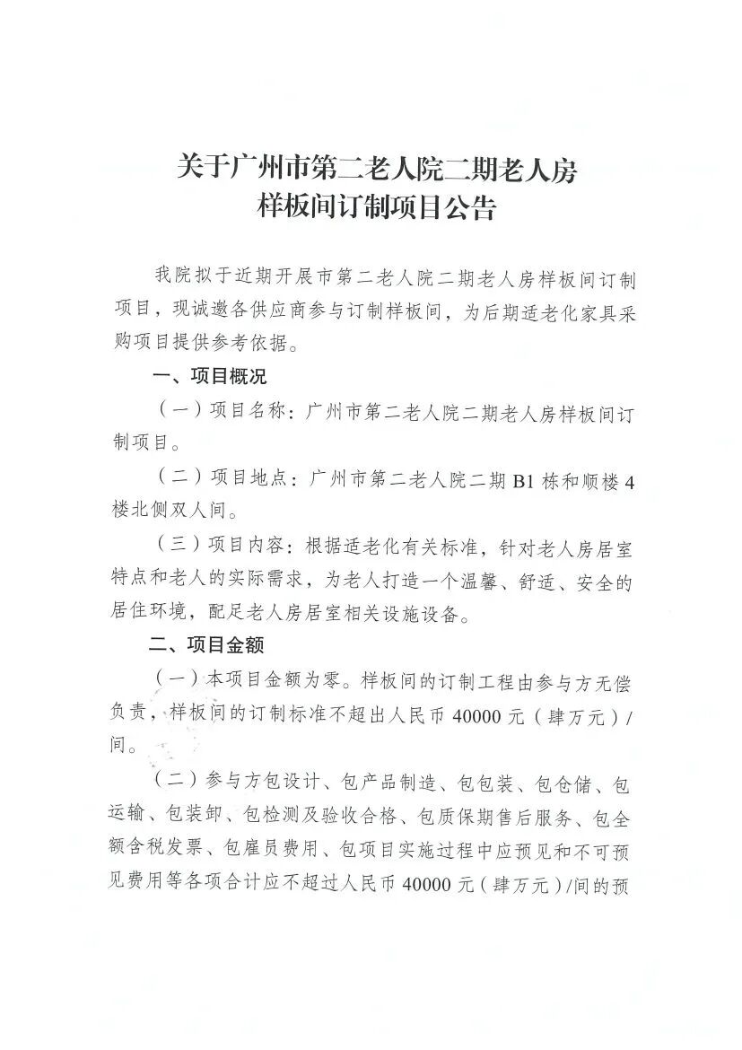 广州市第二老人院二期老人房样板间订制项目公告