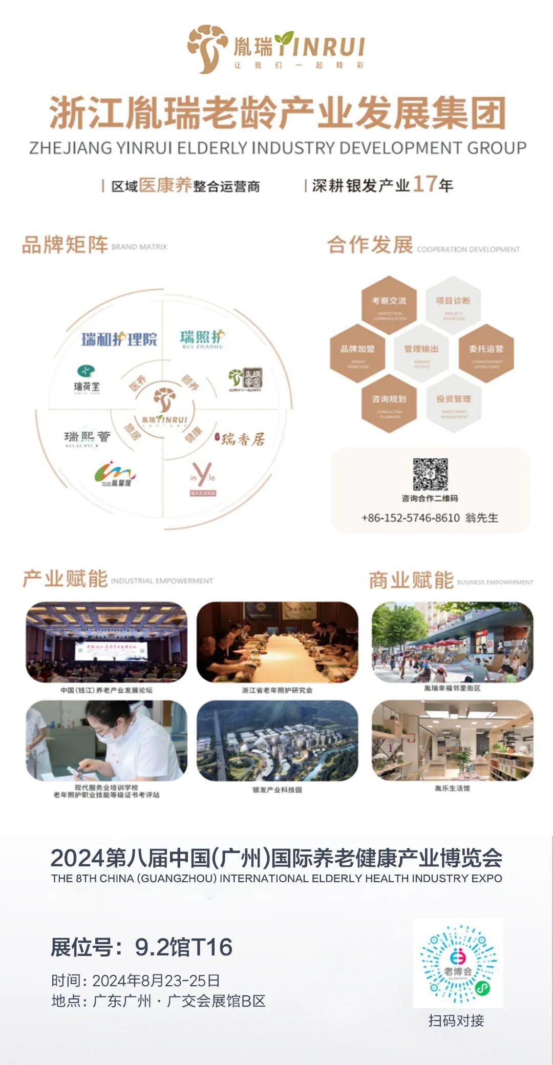 胤瑞精耕银发主业,强抓项目落地,旗下投资管理服务项目约160000平方米,医养床位1300余张。未来,胤瑞将依托浙江省老年照护研究会、中国(钱江)养老产业发展论坛以及教育部1+X老年照护职业技能等级证书浙江省考评站等赋能体系,为银发产业发展提供咨询规划、品牌加盟、管理输出、委托运营等系统化的一揽子服务方案,全力以赴向着“千万工程+杭州样板”的目标迈进,并将持续致力于产业科技发展生态的整合及银发产业的拓展运营,陆续推进“银发经济”科创中心、“银发经济”产业园、现代服务业培训学校等项目建设,打造银发产业领域的创新标杆。